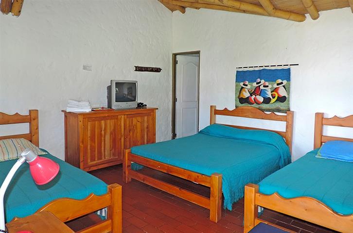 Habitación2: 1 cama doble, 2 camas sencillas, baño privado, TV, maletero