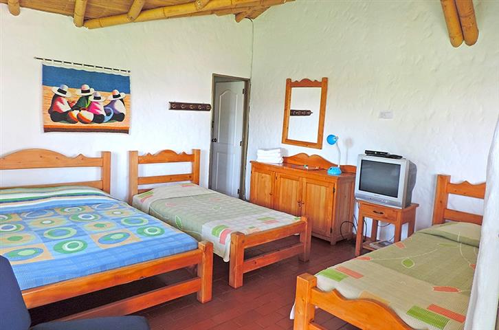 Habitación3: 1 cama doble, 4 camas sencillas, baño privado, TV, maletero